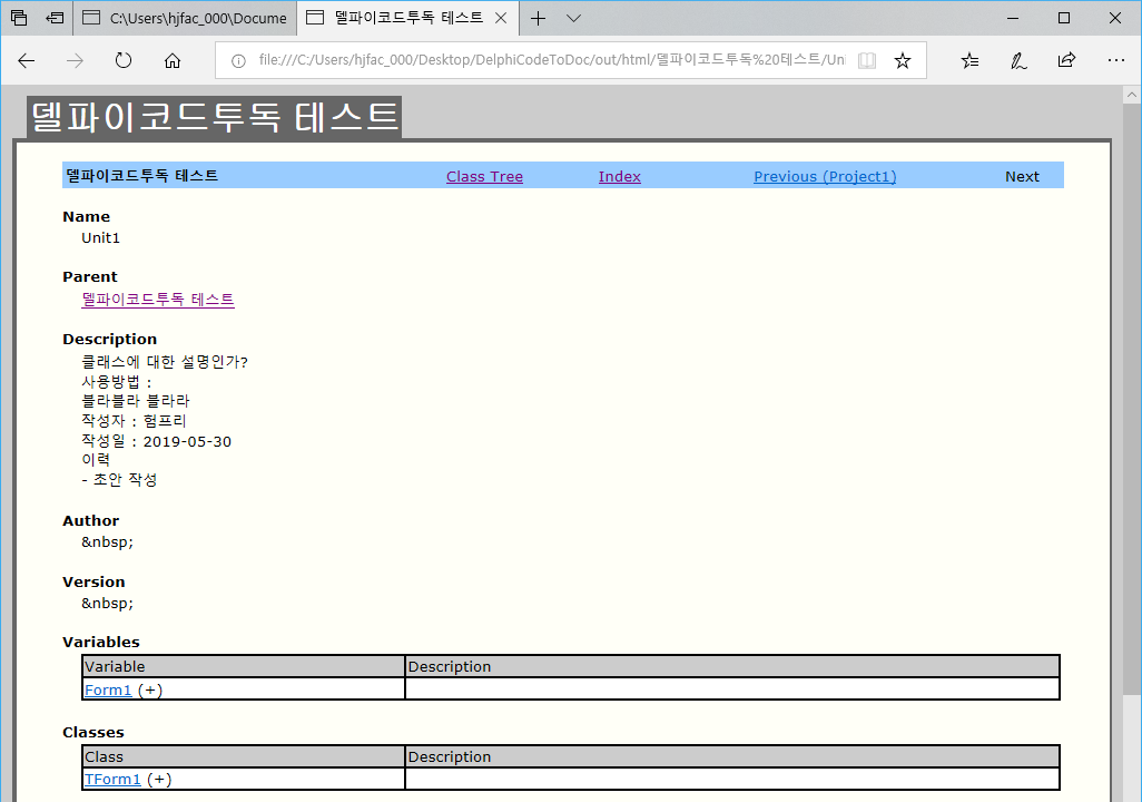 이 글에서는 DelphiCodeToDoc를 이용해 문서화합니다.
