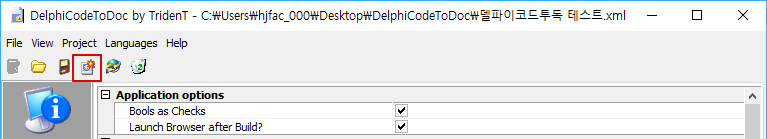 DelphiCodeToDoc.exe 실행 후 [New] 버튼 클릭(또는 File > New 메뉴 선택)