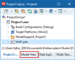 Projects 팬에서 Model View 탭을 선택 후 모델을 생성합니다.