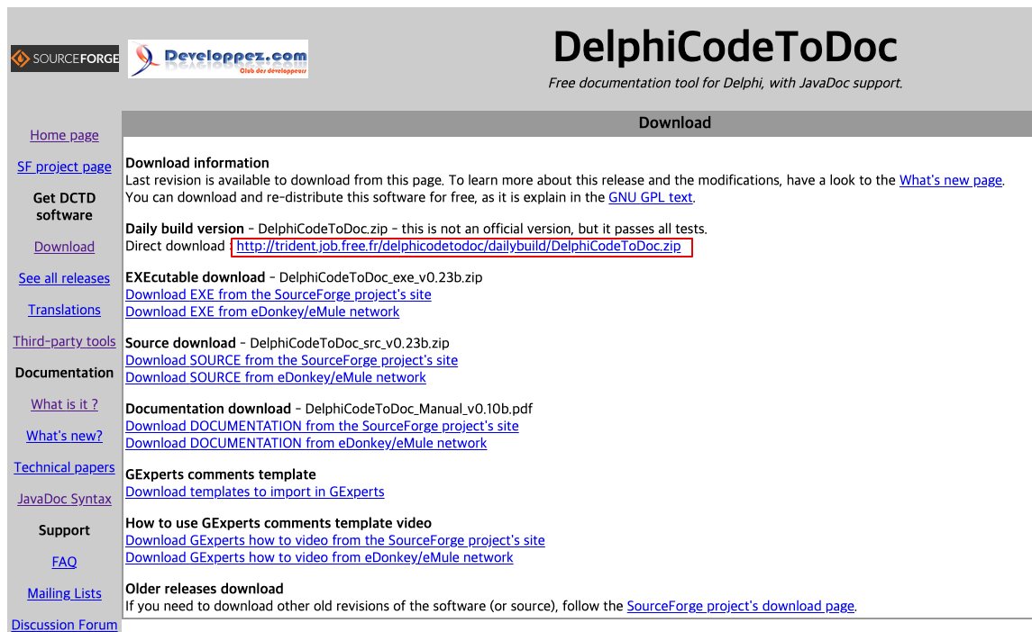 - DCTD 다운로드 페이지(http://dephicodetodoc.sourceforge.net/Download.htm) 방문