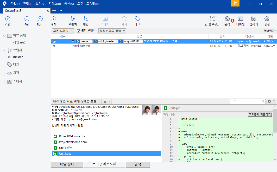 다음 글에서는 위 기능을 이용해 변경(추가/수정/삭제)된 소스코드를 저장소에 반영하는 기능등을 살펴봅니다.