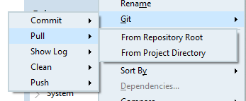 RAD 스튜디오의 깃 연동은 가장 중요한 기능(Commit, Pull, Push, Clean, Show Log) 위주로 제공합니다.