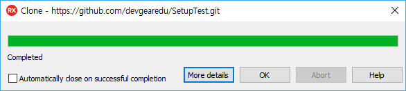 로컬로 복사(Clone)가 완료되면 [OK] 버튼 클릭. 지정된 경로에 소스코드가 복사되었습니다.