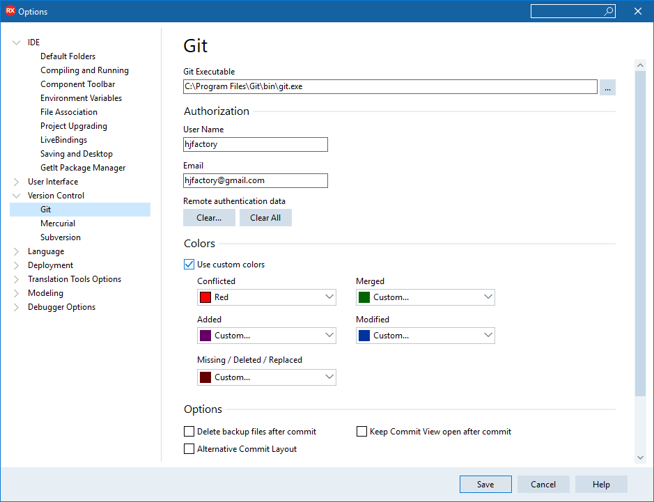 RAD 스튜디오에서 깃 설정