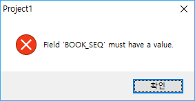BOOK_SEQ 필드는 자동증가필드로, 필드에 값이 없다는 오류입니다. 자동증가필드는 자동으로 값이 채워지도록 설정해야 합니다.