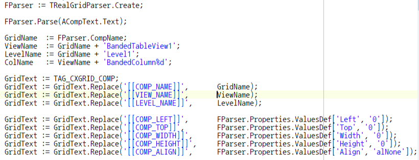 다음(RealGridToCXGridConverter.GetConvertedCompText)과 같이 파서로 분석한 정보로 치환합니다.