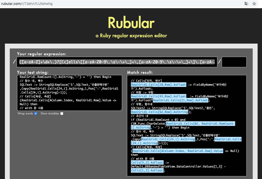 다음은 위 구문에서 "GridName.Cells[].As***"을 찾는 정규표현식입니다.(정규표현식에 대한 설명은 생략합니다.)