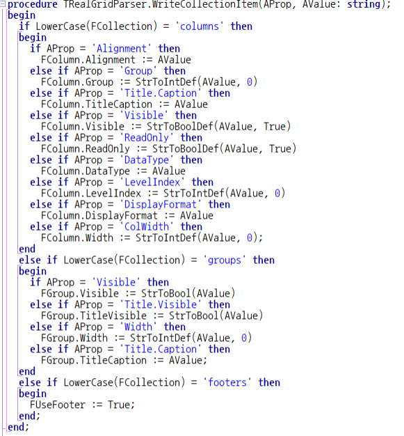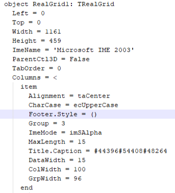 리얼그리드를 분석하는 작업은 컬럼, 밴드 등의 복잡한 구조를 분석하기 위해 TObjectTextParser를 상속해 TRealGridParser 클래스를 작성했습니다.