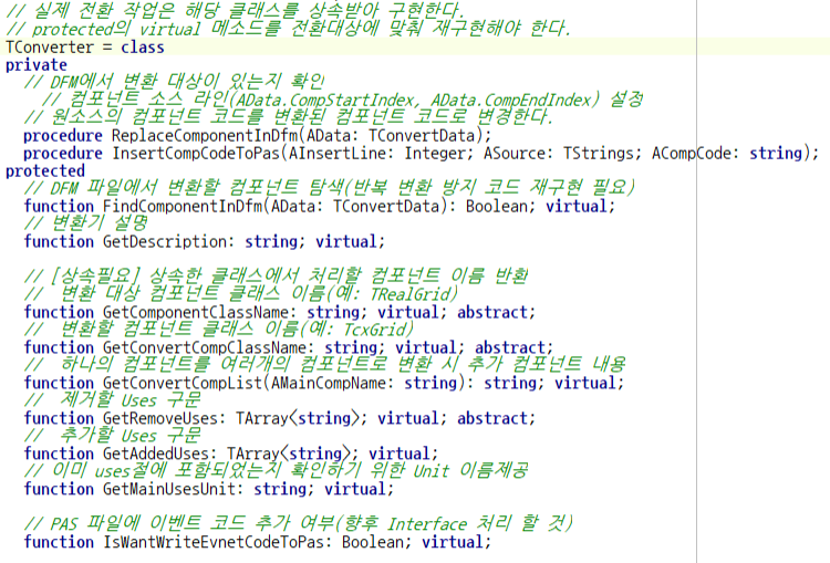컨버터 클래스(TConverter)를 상속받아 컴포넌트 변환 작업 별 컨버터를 재작성 합니다.