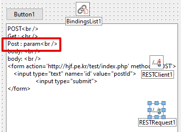 델파이 11.0에서 POST 요청 시 파라메터를 POST 파라미터로 전달하려면, 파라메터의 ContentTypeStr을 "multipart/form-data"로 지정해야 합니다.