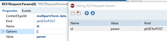 델파이 11.0에서 POST 요청 시 파라메터를 POST 파라미터로 전달하려면, 파라메터의 ContentTypeStr을 "multipart/form-data"로 지정해야 합니다.