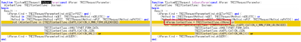 특히, 파라메터 전송 방식을 판단하는 IsQueryParam은 아래와 같이 변경되었습니다.(좌: 10.4.2, 우: 11.0)
