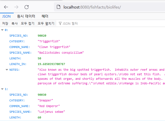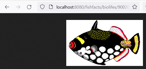 {"Thread":1812,"RegResource":{"name":"fishfacts","endpoints":[ {"name":"GetItem","method":"Get","path":"fishfacts/bio/lifes/{item}/photo/"}, {"name":"biolifes.List","method":"Get","path":"fishfacts/biolifes/","produce":"application/json, *;q=0.9"}, {"name":"biolifes.Get","method":"Get","path":"fishfacts/biolifes/{id}","produce":"application/json, *;q=0.9"}, {"name":"biolifes.Put","method":"Put","path":"fishfacts/biolifes/{id}","consume":"application/json, *;q=0.9"}, {"name":"biolifes.Post","method":"Post","path":"fishfacts/biolifes/","consume":"application/json, *;q=0.9"}, {"name":"biolifes.Delete","method":"Delete","path":"fishfacts/biolifes/{id}"} ]}}- GetItem: 이미지 제공을 위한 커스텀 엔드포인트 제공한 것을 확인