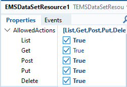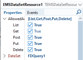 TEMSDataSetResource 컴포넌트는 DataSet 속성에 설정된 데이터셋의 데이터를 REST API로 제공합니다.