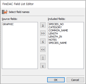 - SPECIES_NO 선택 후 [>] 버튼을 클릭해 "Included fields:"로 이동